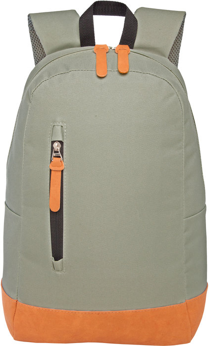 30 x 45,5 x 14 cm Capacidad 16 litros aprox. Poliéster 600D y PU. Mochila con bolsillo frontal con cierre de apertura vertical. Correas ajustables y espalda acojinadas. Tiradores de cierre y detalles en la parte inferior en material PU color marrón.